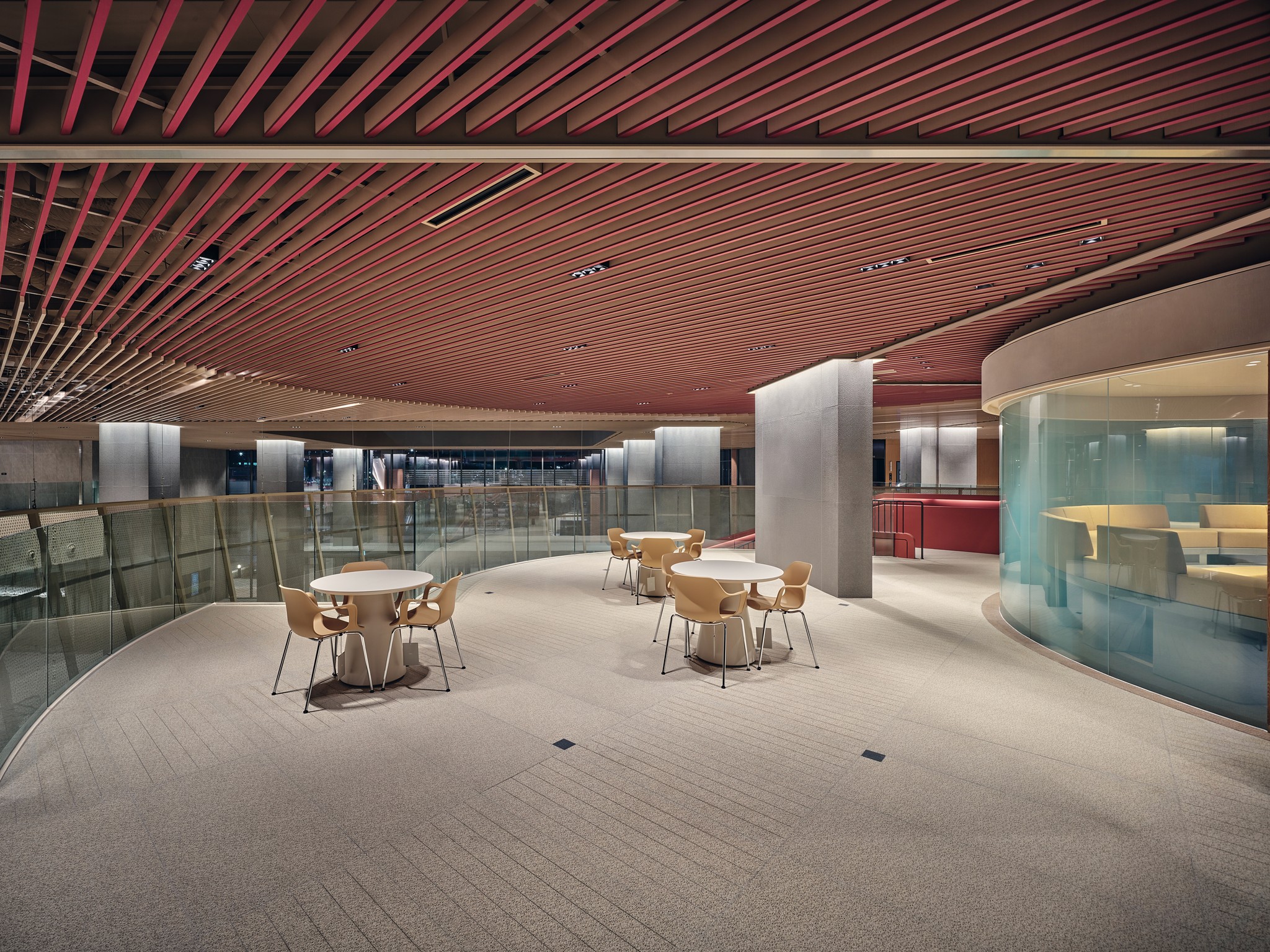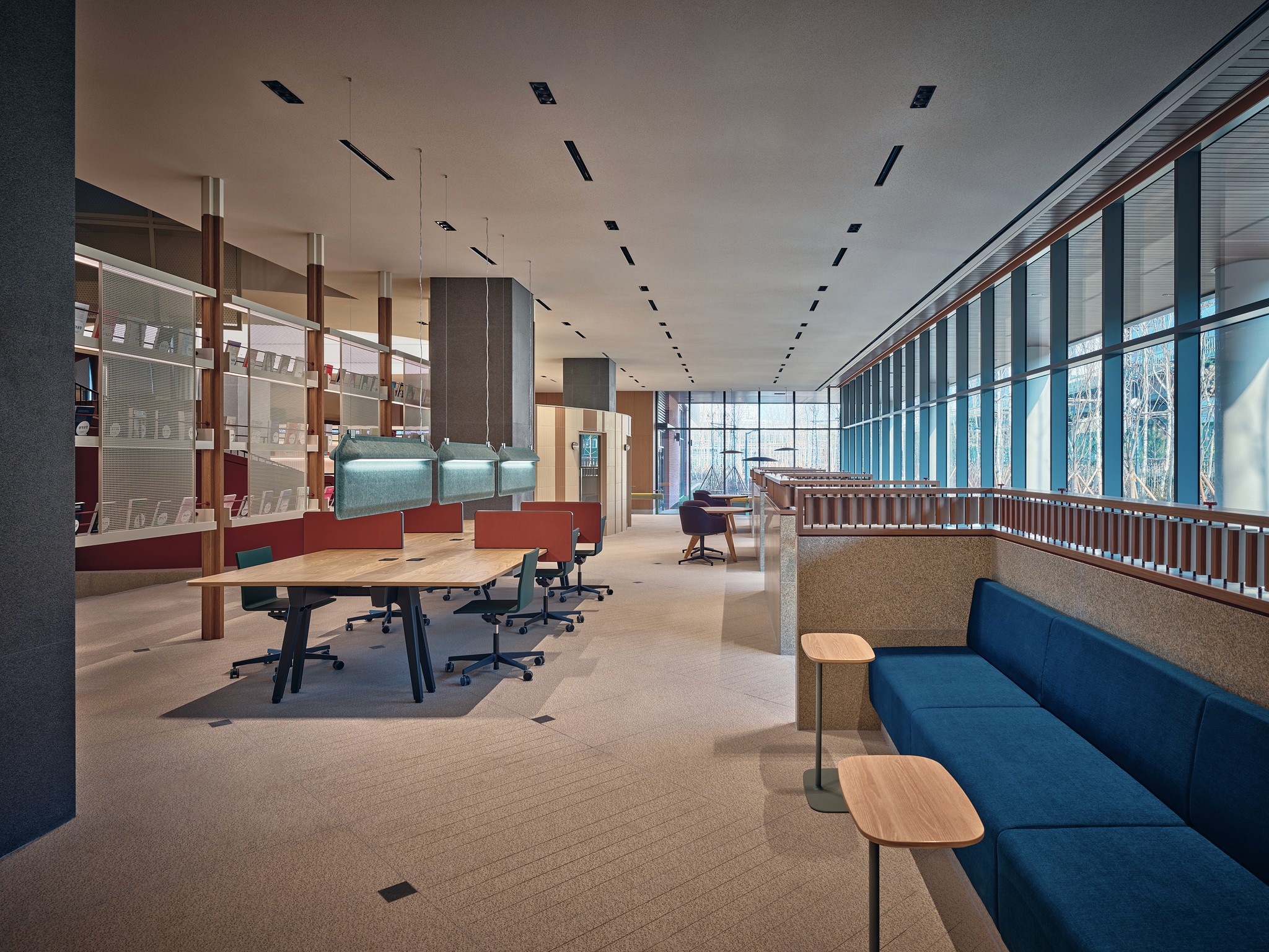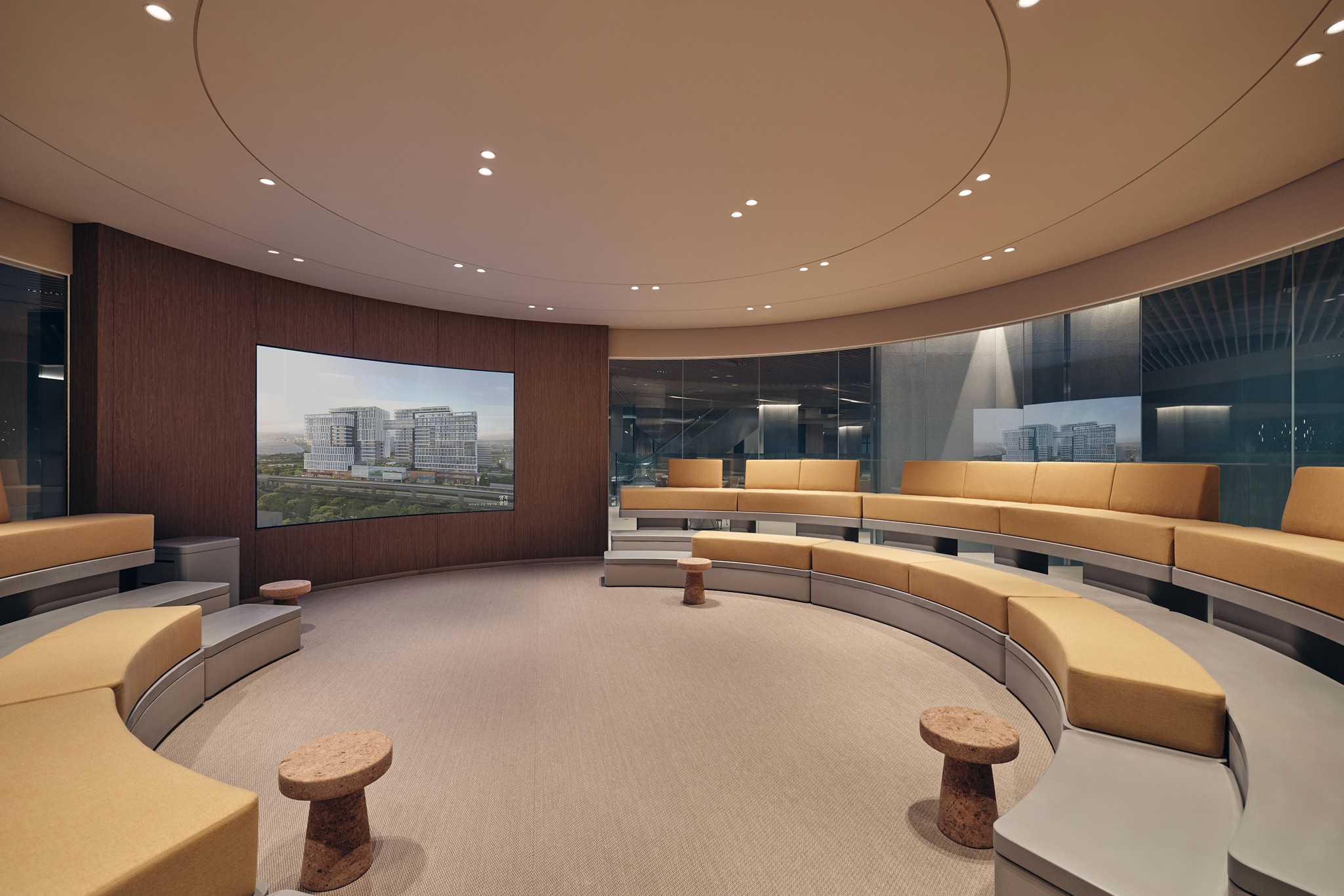 The void lobby, which connects the 1st and 2nd floors, provides a sense of openness and natural light through the high ceilings and ceilings of over 9m. We promoted retail and community revitalization through open-air design, and actively introduced natural elements through the middle, indoor landscaping, and flower planting. Through this, it realizes the user's psychological stability and energy saving at the same time. It has a variety of facilities that provide creative and efficient work environments such as a co-working lounge, various types of work seats, cafes and canteen, mid- to large-sized conference rooms, and VIP-only spaces.