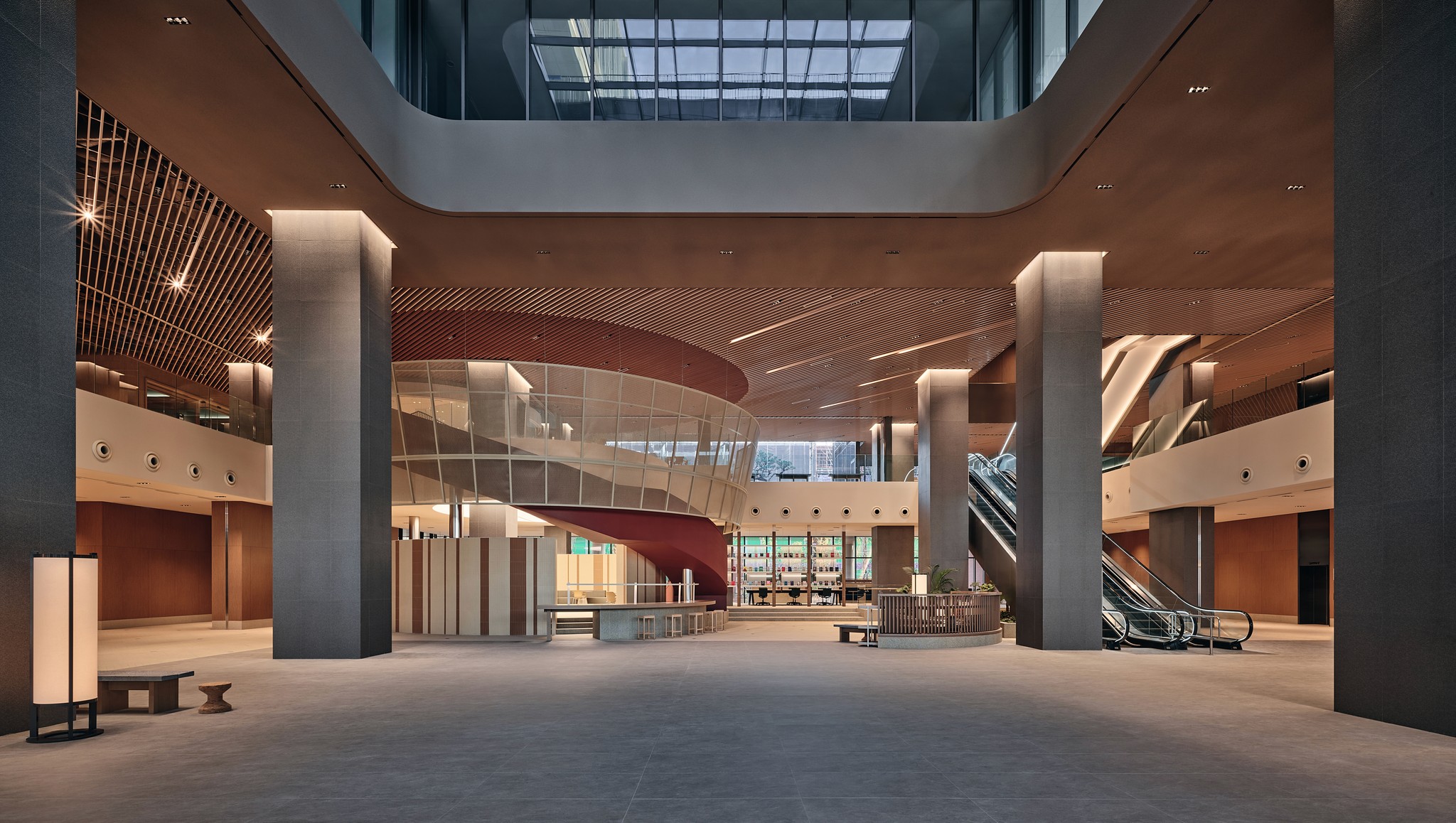 1층과 2층을 잇는 보이드 로비는 9m 이상의 높은 천장과 천창을 통해 개방감과 자연광을 제공합니다. 개방형 동선 설계로 리테일과 커뮤니티 활성화를 도모했으며, 중정과 실내 조경, 생화 식재를 통해 자연 요소를 적극적으로 유입했습니다. 이를 통해 사용자의 심리적 안정과 에너지 절감을 동시에 실현합니다. 코워킹 라운지, 다양한 형태의 업무 좌석, 카페·캔틴, 중대형 회의실과 VIP 전용 공간 등 창의적이고 효율적인 업무 환경을 제공하는 다채로운 시설을 갖추고 있습니다.